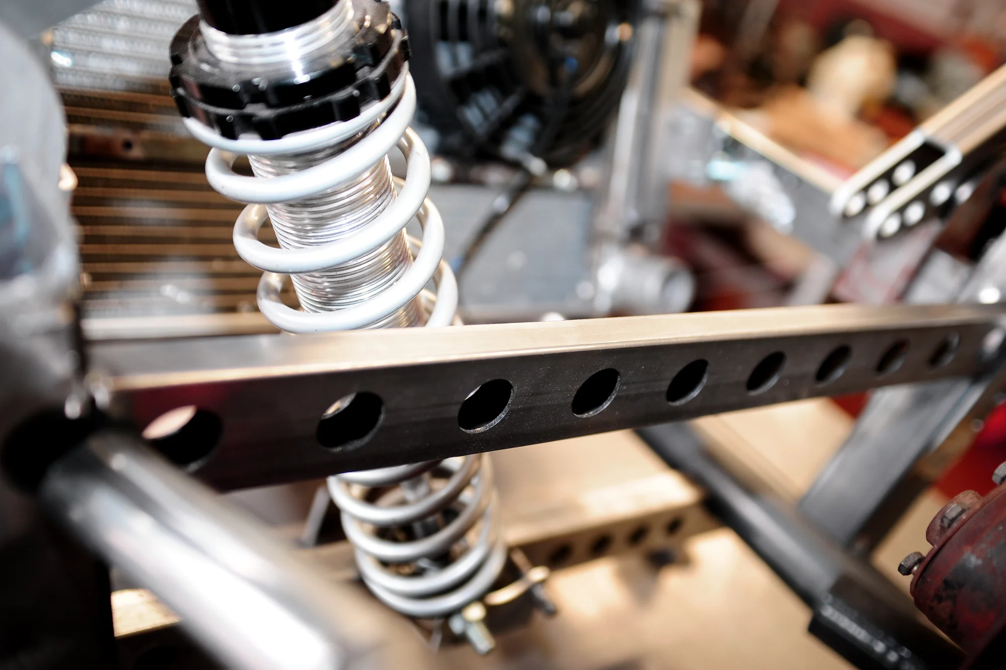 Sospensioni posteriori ad assale rigido. Puntone inferiore di ancoraggio al telaio, di spinta e reazione. Puntone superiore longitudinale per contrastare le forze in accelerazione ed in frenata. Parallelogramma di Watt. Barra stabilizzatrice antirollio. Gruppo molla ammortizzatore coassiale.